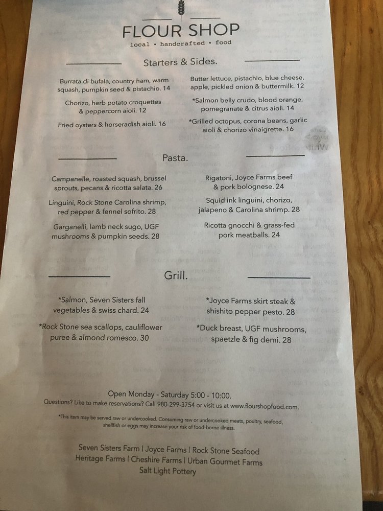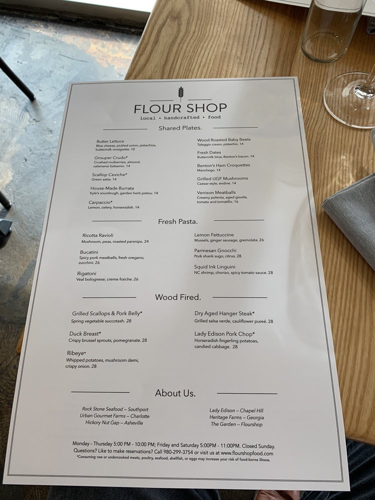 Flourshop in Charlotte, NC offers a trendy, romantic, and classy dining experience in a wheelchair-accessible setting. With a full bar and a variety of vegetarian options, Flourshop is perfect for dinner dates or special occasions. The menu features dishes like burrata, spinach & potato gnocchi, squid ink with shrimp, and lamb ravioli, all made in-house. Customers rave about the flavorful and fresh food, as well as the attentive service provided by the friendly staff. Highlights include the open kitchen, where diners can watch their meals being prepared, and the cozy dining area. Overall, Flourshop impresses with its delicious New American cuisine and inviting atmosphere, making it a must-visit spot for food enthusiasts in Charlotte.